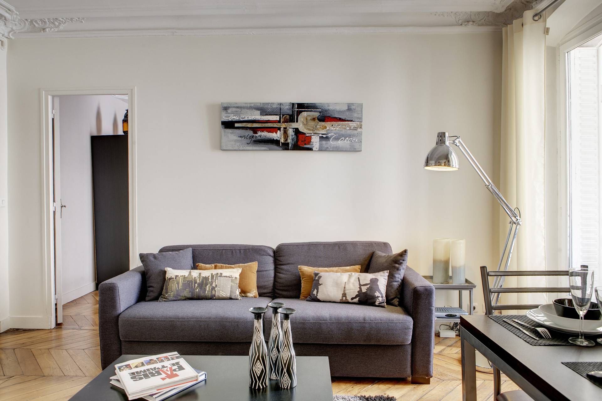 Préservé des regards au sein d’un immeuble bourgeois en pierre de taille cette location design et contemporaine s’adresse à une clientèle sensible à l’aménagement intérieur et au quartier environnant.
